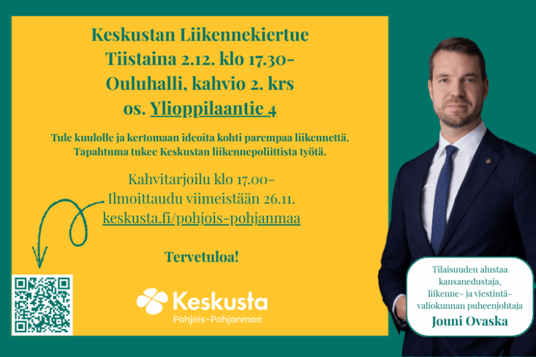 Tilaisuuden alustaa kansanedustaja, liikenne- ja viestintävaliokunnan puheenjohtaja Jouni Ovaska.