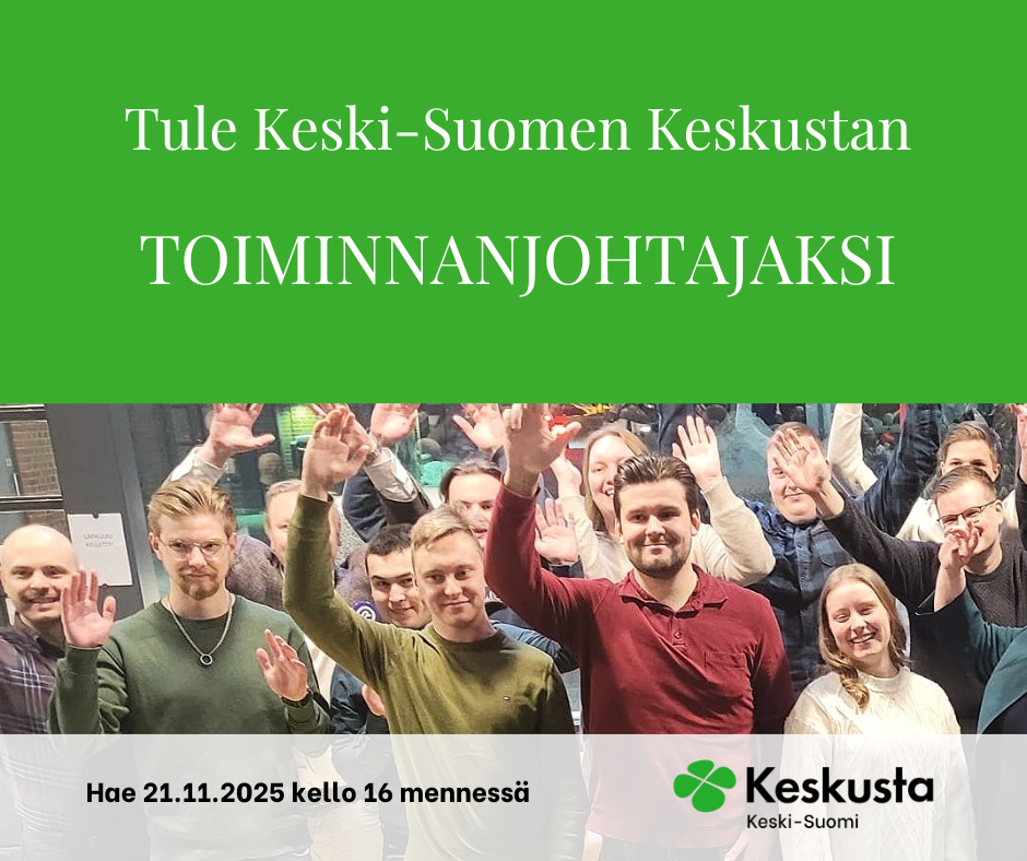 Haemme Keskustan Keski-Suomen piirille toiminnanjohtajaa täysiaikaiseen ja vakituiseen työsuhteeseen 1.4.2026 alkaen tai sopimuksen mukaan.