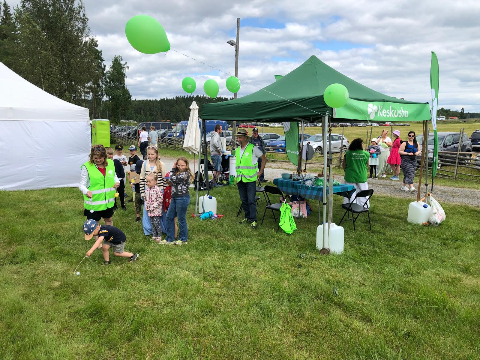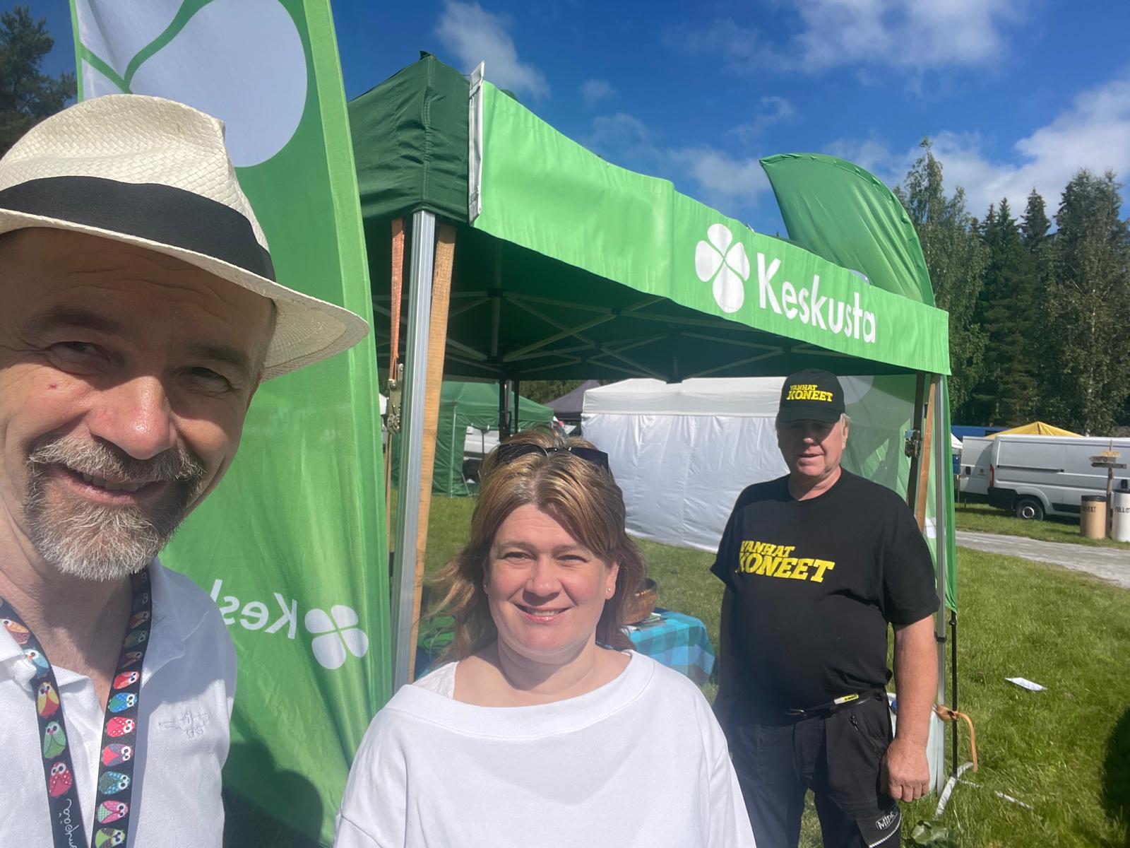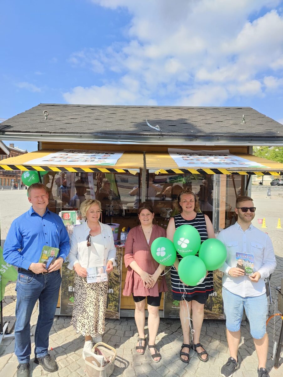 Keskustanaiset EU-vaalien aikaan ehdokkaiden kanssa vaalimökillä.
