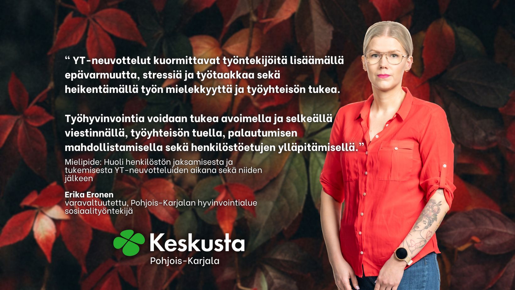 Erika Eronen: Huoli henkilöstön jaksamisesta ja tukemisesta YT-neuvotteluiden aikana sekä niiden jälkeen