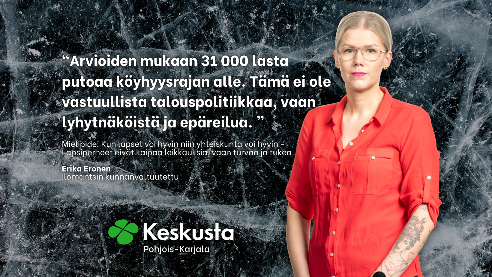 Kun lapset ja heidän perheensä voivat hyvin, yhteiskunnassa voidaan hyvin. Lapsiperheet eivät kaipaa leikkauksia, vaan turvaa ja tukea. Köyhyys ei ole luonnonvoima, vaan seurausta useista päätöksistä – ja siksi sitä voidaan myös päätöksillä vähentää. Suomessa köyhyys kasvaa, ja leikkaukset kohdistuvat niihin, joilla on jo valmiiksi vähiten. Ilomantsissa tämä näkyy toimeentulotuen saajien määrän kasvuna, myös alle 15-vuotiaiden perheissä – lasten, joiden ei pitäisi joutua kantamaan taloudellisia huolia.