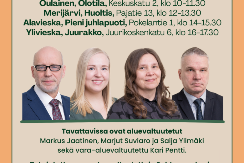 Tule mukaan kuulemaan ja keskustelemaan Suomen suunnasta ja Keskustan ohjelmatyöstä. Järjestöpäivillä etsitään ratkaisuja Pohjois-Pohjanmaan kannalta tärkeimpiin kysymyksiin ja haasteisiin. Lisäksi paneudutaan, miten menestyvä tiimi rakennetaan. Viikonlopun aikana on tarjolla järjestökoulutusta sekä virkistäytymistä ja mukavaa yhdessäoloa.