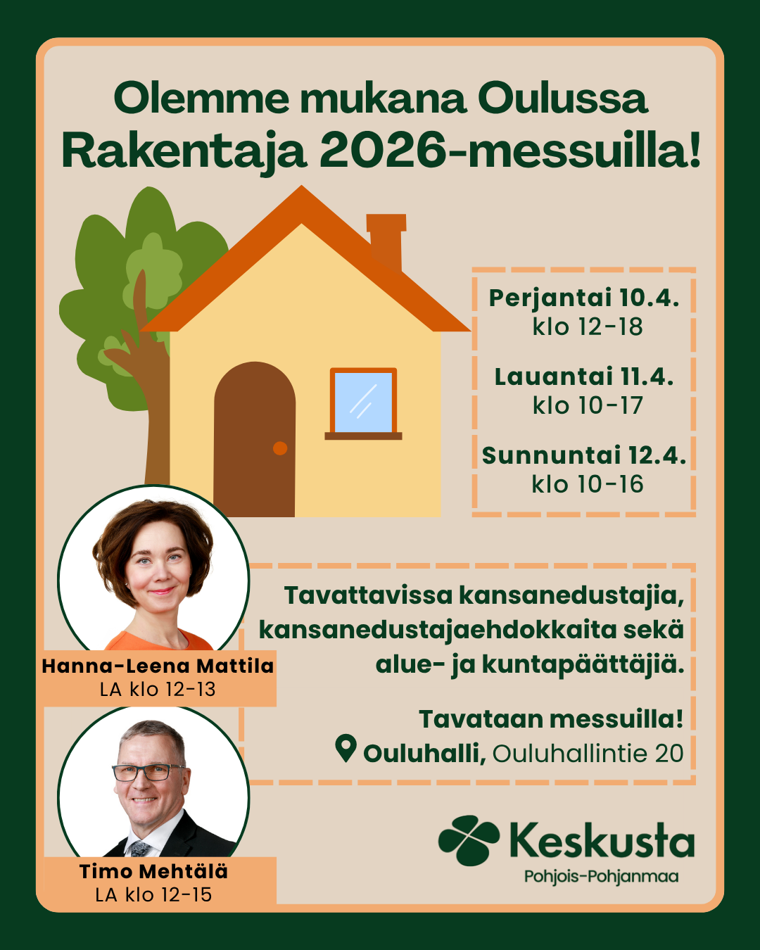 Tavattavissa on kansanedustajia, eduskuntavaaliehdokkaita sekä alue- ja kuntapäättäjiä.![]()