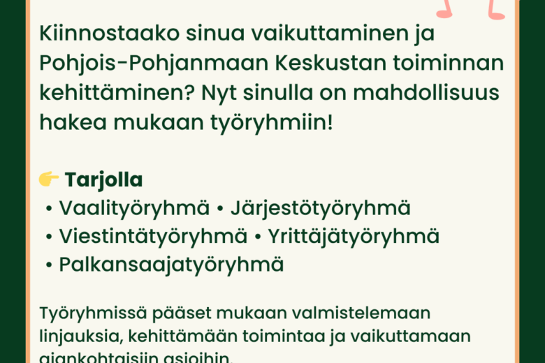 Hae mukaan työryhmiin! Haku käynnissä 12.4. saakka.