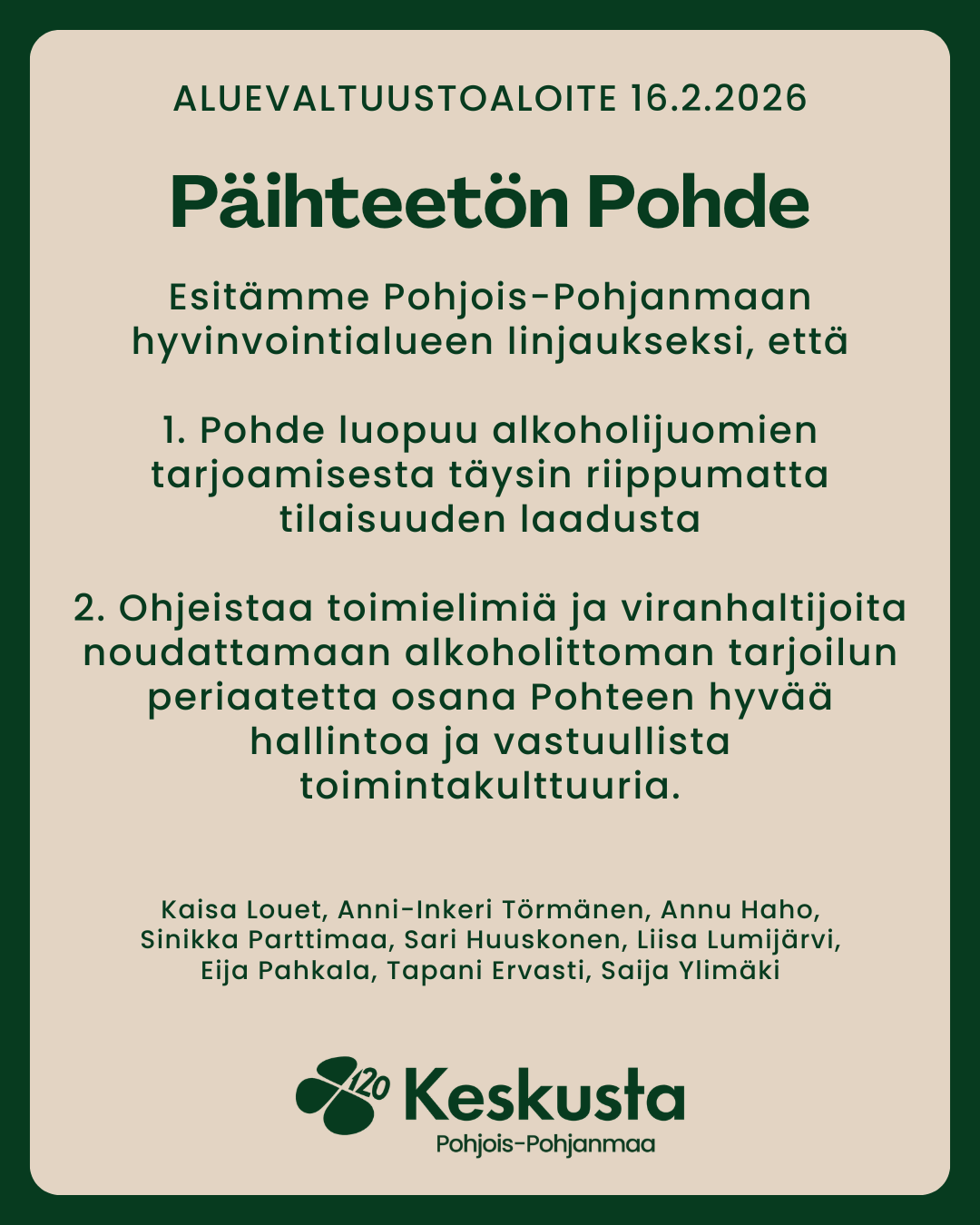 Aluevaltuustoaloite Päihteetön Pohde