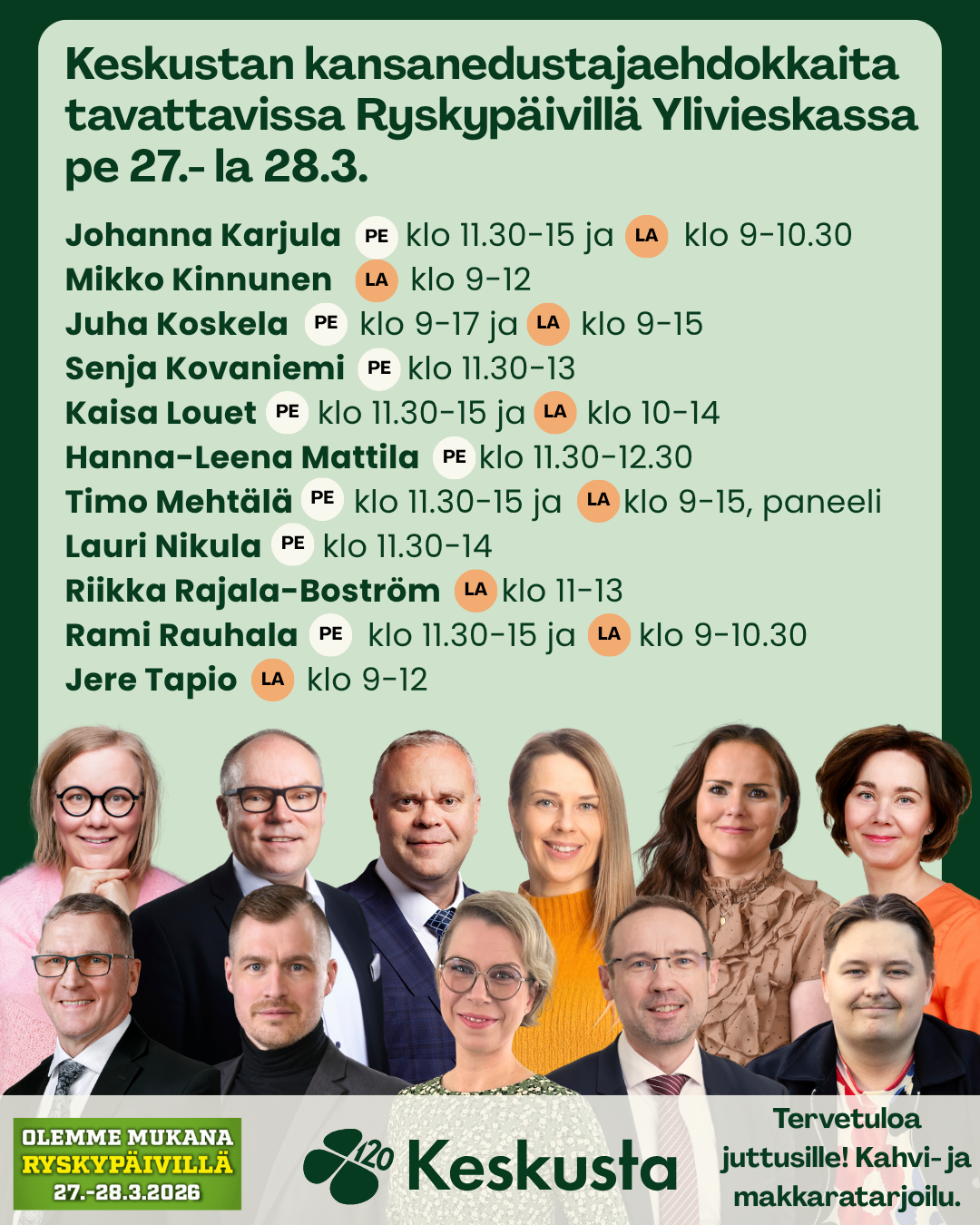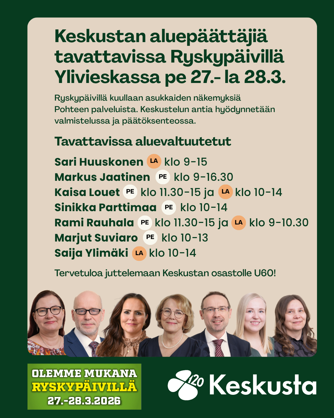 Ryskypäivillä Ylivieskassa on mahdollisuus tavata myös Pohjois-Pohjanmaan hyvinvointialueen aluevaltuutettuja.