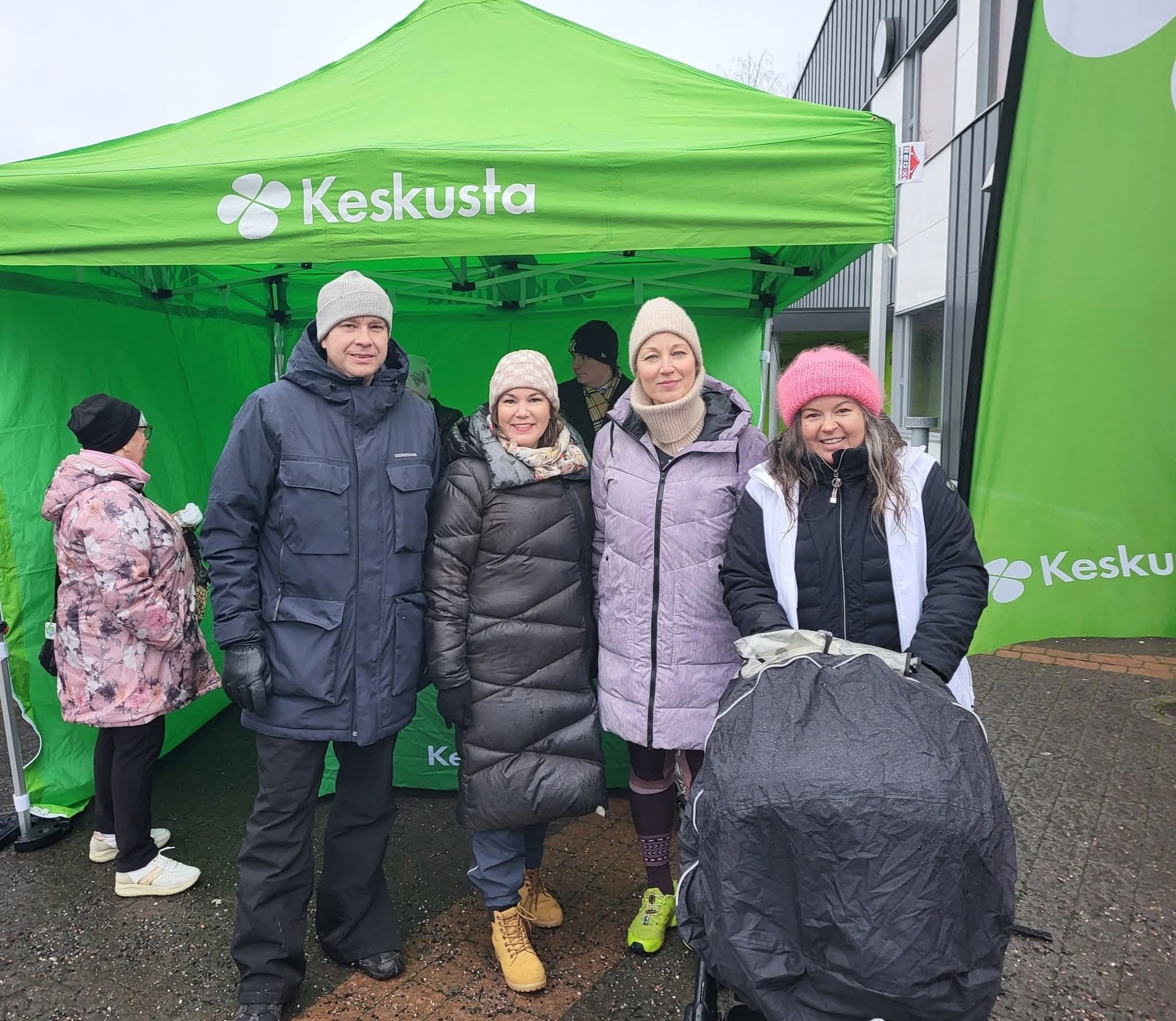 Kuva on otettu 29.11.2025 Sipoon joulumarkkinoilta. Kuvassa puolueen puheenjohtaja Antti Kaikkonen, aluevaltuutetut Outi Lankia, Terhi Tikkala ja kunnanvaltuutettu Sonja Hällfors